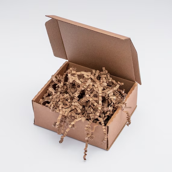 Один из самых популярных вариантов – бумага тишью: мягкая, тонкая, декоративная, позволяет играть с цветом и слоями. Она легко драпируется, создавая объем без лишнего веса, и аккуратно обволакивает содержимое коробки. Бумажный наполнитель для коробок довольно универсален – подходит как для минималистичных, так и для ярких подарочных решений.